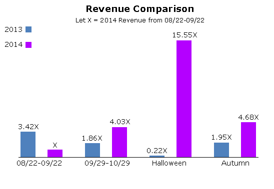 You should probably ignore the spike in Halloween sale revenue in 2014 as that was largely down to a lucky fluke for us rather than any changes in the Discovery algorithm.