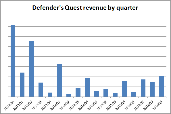 NOTE: In June 2016 we launched the Defender's Quest Deluxe edition update, That likely confounds data analysis a bit.