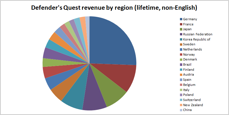 I'm not going to go over the finer points of localization, or whether you should localize your game or not, I covered that in Was localizing Defender's Quest worth it? Today I'll just get straight to the latest data.