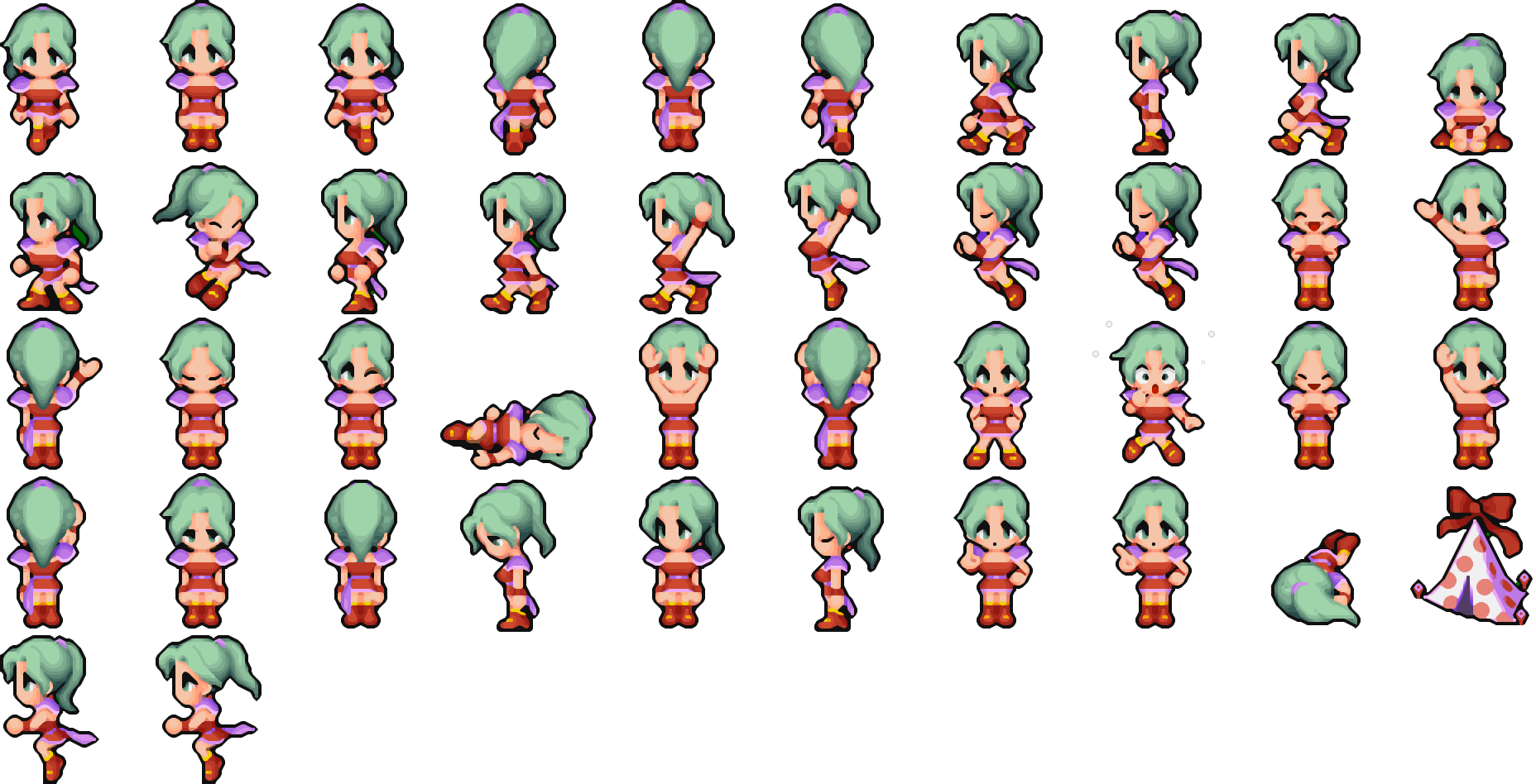 There are certainly some nits I can pick. There's a few too many soft gradients when I'd prefer sharp contrast (like in the physical chibi art). The sprites also look a little flat. Tweak the colors. Watch out for lighting that sometimes approaches pillow-shading. Etc.