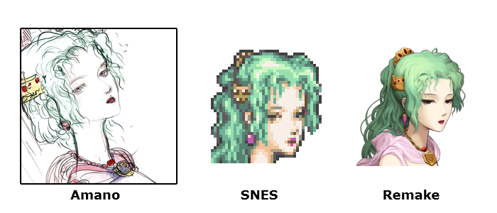 The real fundamental issue behind the new FFV and FFVI remakes is that when everything is scaled up to HD, the discrepancies between portrait art, tile art, and sprite art become glaring. Individually each one might look alright, but together it's a mess.