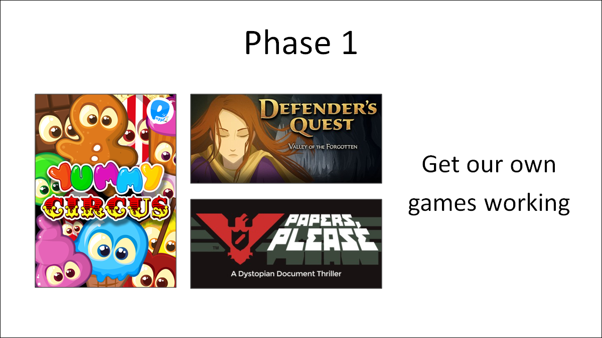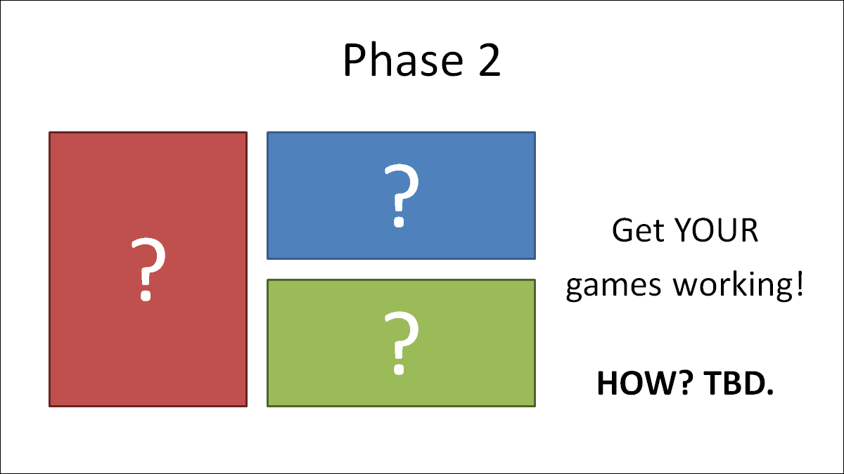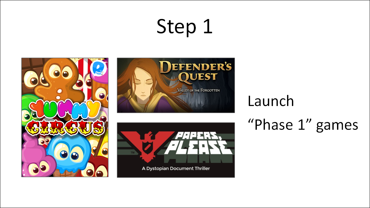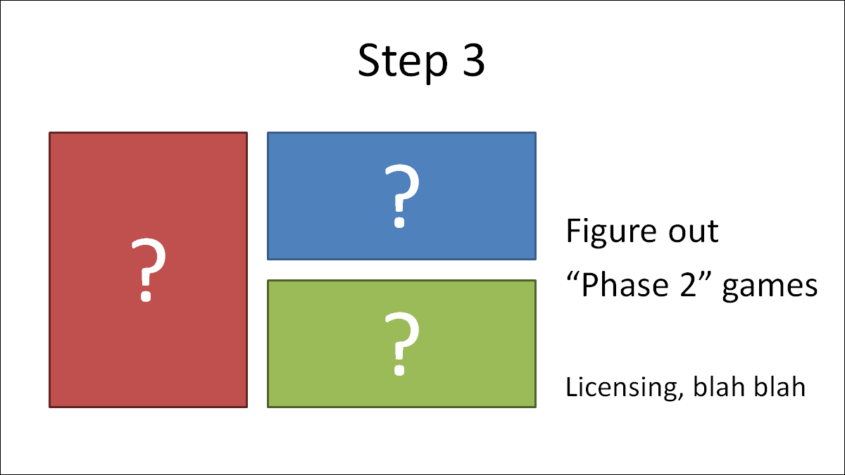 So what's next? Well, step one is to proceed with our "phase 1" launch games: