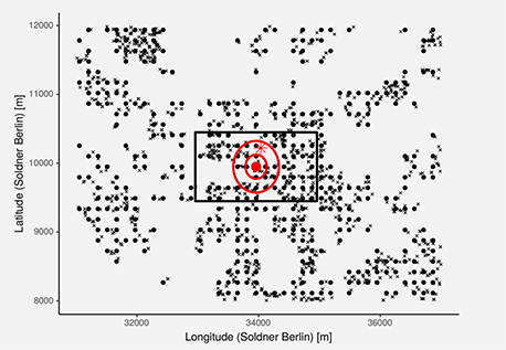 In the end, basic kernel estimation just fills in the land value of unmeasured locations with a local weighted average of known locations.