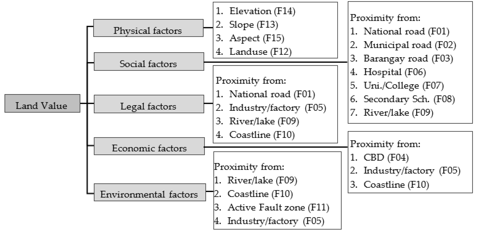 Then you run everything through and see if it works. You can get the land share of the final value by combining the contributions of all the individual factors that you associate with "land," such as proximity to important things.