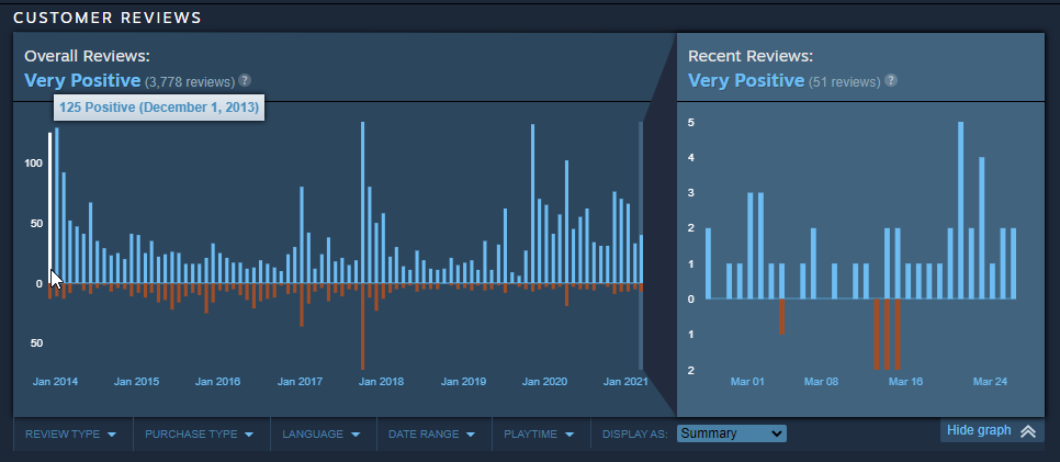 Before we dive in, I want to make it clear I'm not really interested in "bashing Steam" for not having great records of this information. It'd be great if they had all the information I wanted, but the fact is they don't, and they're probably frustrated they're missing it too. Hindsight is 20/20, and honestly the amount and quality of data we have for many other leading platforms (including 3rd party efforts at recording them) is far worse. We're kind of lucky to have the piles of data we do on Steam, disorganized as they are.