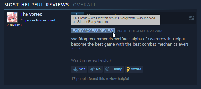 Even better, individual reviews are marked with whether they were written during Early Access. All it takes is one: