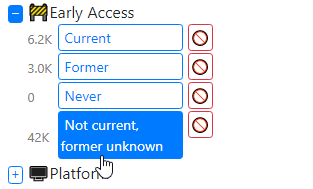 Looking only at games that are both released right now (not "coming soon") and classified as "Not currently Early Access, but former status is unknown", we can apply the following rules: