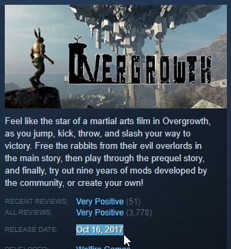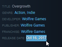 But this isn't available for all games. Overgrowth claims to have been released on Oct 16, 2017: