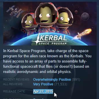 But we still need to contend with the fact that the release date field in the upper info-box itself is unreliable. What if a game was "originally" released off of Steam in 2004, and then re-released on Steam in 2015? Early Access aside, we wouldn't be able to know.